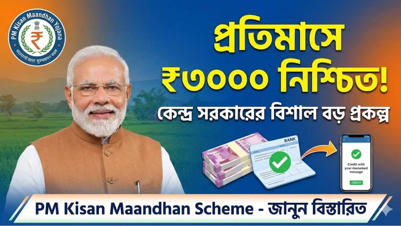 গ্রামের মাঠে যাঁরা ভোর থেকে সন্ধ্যা পর্যন্ত পরিশ্রম করেন, সেই কৃষকরাই দেশের খাদ্য নিরাপত্তার ভিত্তি। কৃষকদের জন্যই আমাদের দেশ চলছে। ভারতবর্ষের মোট জনসংখ্যার ৬৫% হলো কৃষি সম্প্রদায় বা প্রথম শ্রেণীর কাজের সঙ্গে যুক্ত। তাই কৃষক পরিবারের প্রত্যেকটি জনগণকে আর্থিক সহায়তা দেওয়ার জন্য কেন্দ্র সরকার নতুন একটি প্রকল্প নিয়ে এসেছেন যেখানে একটি সময় পড়ে কৃষকদের প্রতি মাসে মাসে ৩০০০ করে টাকা দেওয়া হবে। কেন্দ্র সরকার ২০১৯ সালে চালু করে Pradhan Mantri Kisan Maandhan Yojana। ২০২৬ সালেও এই প্রকল্প কৃষকদের জন্য একটি গুরুত্বপূর্ণ সামাজিক সুরক্ষা ভরসা হিসেবে কাজ করছে। এখনো যারা এই প্রকল্পে আবেদন জানাননি, তারা অতি অবশ্যই এই প্রকল্পের আবেদন জানাতে পারেন।